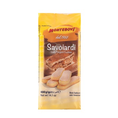 Бисквитное печенье вытянутой плоской формы, сверху покрытое крупинками сахара. Савоярди легко впитывают жидкость и становятся от этого очень мягкими. Савоярди — неотъемлемый ингредиент многих французских и итальянских десертов, в частности, это печенье используется в приготовлении тортов-мороженых, русской шарлотки и тирамису.